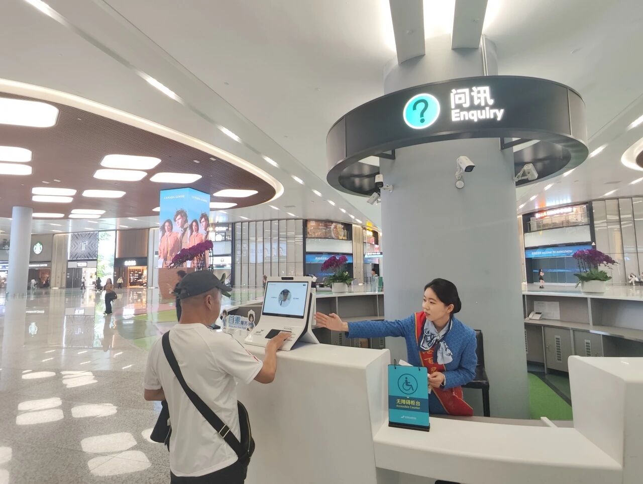 杭州機(jī)場聯(lián)合浙江民航信息科技有限公司研發(fā)的軟硬件一體化的“慧詢一體機(jī)”,創(chuàng)新性地采用雙屏設(shè)計(jì),旅客可通過身份證、登機(jī)牌等證件自助查詢行程信息并同步顯示于工作人員端屏幕,輔助工作人員提供個(gè)性化問詢服務(wù)。該設(shè)備自2023年12月起正式在杭州機(jī)場各問詢臺投入使用,投用后至今問詢臺高峰期排隊(duì)現(xiàn)象基本清零,問詢臺旅客投訴率下降38%,特殊群體問詢服務(wù)時(shí)間壓縮至2分鐘內(nèi),實(shí)現(xiàn)了服務(wù)質(zhì)量與效率的雙提升。