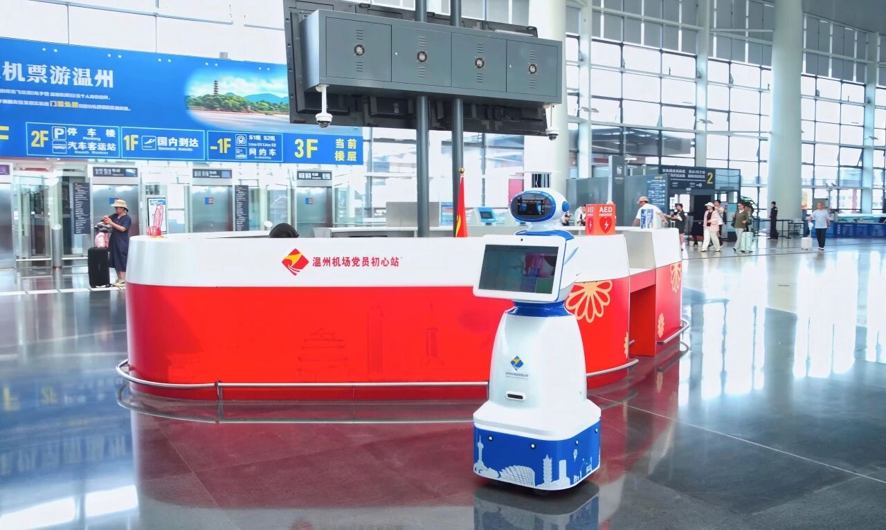 溫州機(jī)場智能引導(dǎo)機(jī)器人專注于機(jī)場服務(wù)場景,深度融合激光雷達(dá)、慣導(dǎo)、視覺里程計(jì)等多傳感器技術(shù),構(gòu)建高精度環(huán)境感知體系,使其能夠在機(jī)場復(fù)雜人流與障礙物環(huán)境中,實(shí)時(shí)更新地圖并動(dòng)態(tài)規(guī)劃最優(yōu)路徑。在實(shí)際應(yīng)用過程中,機(jī)器人可獨(dú)立承擔(dān)信息查詢、室內(nèi)巡檢與導(dǎo)航任務(wù),既能引導(dǎo)旅客快速抵達(dá)指定值機(jī)柜臺,也能指引至各類服務(wù)設(shè)施。旅客疑問識別正確率超95%,平均1.2秒即可響應(yīng)。